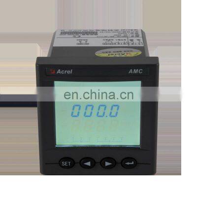 DC Digital Voltmeter AMC72L-DVProducts DescriptionAMC series programmable intelligent meters,adopting AC sampling technology,can directly or indirectly measure electric voltage and current of single phase or three phase grid. It can be used for local display,and connecting industrial control device to form measuring control system. This series of meters have RS-485 port,adopt Modbus-RTU protocol. Analog output,alarm output,switching input/output can be selected. Based on different request,by pressing the keys,parameters of ratio,alarm,communication etc. can be modified.● Measurement: 1-circuit DC Voltage ● Accuracy: 0.5%● Rated Current: 0~10V DC (via Transducer); 300V or 1000V DC (direct connect) ● Power Supply: 85~265V AC/DC● Alarm Output: Low&High Current Alarm● Analog Output: 4~20mA DC● Standard&Certificate: CE Certificates● DI/DO Function: 2-channel DI&2-channel DO optional● Communication: RS485 (MODBUS-RTU) optionalTechnical Parameter1. Function OverviewFunctionDescription&ValueMeasurementThree-phase AC kWh, kVarh, Active Power, Reactive Power, Forward&Reverse Power, Current, Voltage, Zero Sequence Voltage, Zerosequence Current, Voltage-phase Angle, Voltage&Current Unbalance, Power Factor,Harmonic, FrequencyDisplayLCD displayCommunication(Optional)RS485,Modbus-RTU protocol;(1 start bit,8 data bit,1 stop bit,no parity)Baud Rate 1200~38400 bps etc.Alarm Output(Optional)1 channel passive relay,contact capacity 3A/30VDC,3A/250VAC,Used for high,low,unbalance alarm etc.Analog Output(Optional)1~5V DC or 4~20mA DCDI/DO Switching(Optional)DI (Digital input): 2-channel or 4-channel dry contact digital input with built in power supplyDO (Digital output): 2-channel digital output with NO relay contact. Capacity: 3A/30V DC,3A/250V AC2. Main ParametersParameterDescription&ValueInputRated VoltageAC Voltage Input: 400V AC L-L (via direct connetion); 100V AC L-L (via -/100V AC PTs)Rated CurrentAC Current Input: 5A AC or 1A AC (via -/5A AC or -/1A AC CTs)OverloadCurrent&Voltage input overload:1.2 times rated value(continuous); 10 times rated value /1 secondFrequency45~65HzPower ConsumptionPower consumption of each current&voltage input circuit is less than 0.5VAMeasuring AccuracyVoltage0.2%Current0.2%Active Power0.5%Reactive Power1.0%kWh0.5%kVarh1.0%Frequency±0.05HzHarmonic±1%Power SupplyVoltage Range 85-265V AC/DC; 24V or 48V DC (±20%)Power Consumption≤10VAInsulation resistance≥ 100MΩPower frequency withstand voltageBetween Power supply//Switching Output// Current Input//voltage Input and Transmitting// Communication //Pulse Output//switchinginput AC 2 kV 1min;Between Power supply、switching output、Current Input、voltage Input AC 2 kV 1min;Between Transmitting、Communication、Pulse Output、switching input AC 1kV 1 min;3. EnvironmentConditionDescription&ValueTemperatureOperation: -25℃~+65℃; Storage: -40°C ~+80°CHumidity≤95%RH,no condensation,without corrosive gasAltitude≤ 2500mWiring IllustrationDC Voltage Signal (0~10V DC) Input via -/10V DC TransducerDC Voltage Signal (300V DC) Input via direct ConnectionDC Voltage Signal (1000V DC) Input via direct ConnectionDimension & InstallationCertificationCompany ProfileFAQ
