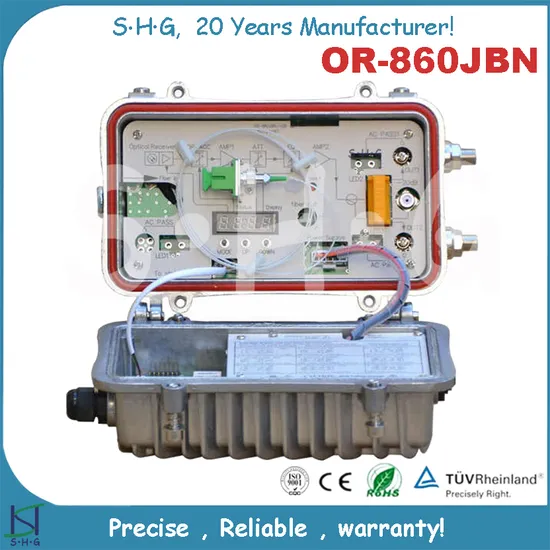 OR-860JBN series field optical receiver is a kind of new CATV network product. It adopts GaAs MMIC amplifying component reasonably combined with GaAs amplifying module. AGC/MGC funciton is optional, which makes output level keep stable when input optical power is -6~+1dBm, and also makes the machine as higher performance index. It is also possible to realize output level and slope's control through network management system to machine, and makes it has higher performance index, as well as making CATV network project very convenient to debug. Meanwhile can transmit digital and analogue signal. This is FTTH main-stream machine type in current HFC network system construction.