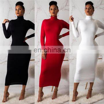 New Arrivals Women Turtleneck Long Sleeve Casual Dresses Ladies Fashion Pencil Casual Dresses Women Autumn Dresses