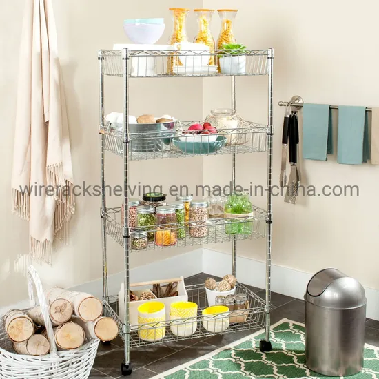 4-Tier Chrome Wire Shelving Unit with Baskets, Wire Basket Shelf Product Features: