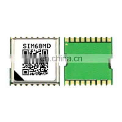 DescriptionSIM68MD● SIM68MD is a high performance and reliable GNSS module. It is a standalone L1 +L5 dual-band GNSS module in a LCC type with AIROHA’s high sensitivity navigation engine, which allows customer to achieve industry’s high level sensitivity, accuracy, and Time-to-First-Fix (TTFF) with lower power consumption.● SIM68MD provides simultaneous GPS, GLONASS, BeiDou , Galileo and QZSS open service L1 reception capability and GPS, BeiDou, Galileo and QZSS open service L5 reception capability. SIM68MD can acquire and track any mix of multiple satellite signals. Combining advanced AGPS called EASY™ (Embedded Assist System) with proven AlwaysLocate™ technology, SIM68MD achieves the highest performance and fully meets the industrial standard.Product Advantages● L1 and L5 dual-band GNSS receiver● Support EASYTM self-generated orbit prediction● Support EPOTM orbit prediction● Support SBAS ranging (WAAS, EGNOS, GAGAN, MSAS)● Support Jamming Removing● Low-noise amplifier has been integratedProduct DetailsMechanical data• Dimensions 10.1*9.7*2.5mm• Weight 0.5gFeaturesSupport L1: BeiDou/GPS/GLONASS/Galileo/QZSSL5: BeiDou/GPS/Galileo/QZSSSupport EASYTM self-generated orbit predictionSupport EPOTM orbit predictionSupport SBAS ranging(WAAS, EGNOS, GAGAN, MSAS)Support Jamming RemovingLow-noise amplifier has been integratedSupport DGPS (RTCM)Indoor and outdoor multi-path detection and compensationLOCUSTM logger functionCertifications• TBDPerformance dataReceiver type:L1: 75SVsL5: 60SVsMax. update rate 10HzSensitivity¹:Tracking -157dBmReacquisition -151dBmCold starts -141dBmTime-To-First Fix2Cold starts 27sWarm start 25sHot starts <1sEPO Assist 13sAccuracyAutomatic Position3 1.5MSpeed4 0.1m/sOperation temperature5 -40℃~+85 ℃InterfacesSerial interfaces:UARTI2CDigital I/O:Pulse-per-second (PPS)EINT0 inputProtocols:NMEARTCMElectrical dataPower supply 2.8V~4.3VBackup power 2.3V~4.6VPower consumption2,6:Acquisition 22mATracking 22mASleep current 340uABackup 50uAAntenna type Active and passiveAntenna power External or internal VCC_RFWhy Choose UsFAQQ1. What is the minimum order quantity for your products?A1. Minimum order quantity starts from ONE piece.Q2. What's the quality of your products?A2. We have professional QA/QC team to ensure the quality before shipment. We provide 1 year warranty for all the new and original products.Q3. Is this product free of shipping or free samples?A3. Regularly the sample and shipping cost will be at the buyer's account. But in specific case, we may take these costs. Please kindly check with us the details by email. Thank you.All Categories4G 5G ModuleGPS ReceiverGPS AntennaGSM/LTE/WiFi AntennaGSM/LTE+GPS AntennaGNSS/GPS Module2G/3G/4G ModemGPS TrackerRF Cable / ConnectorSIMCard HolderSensorIC