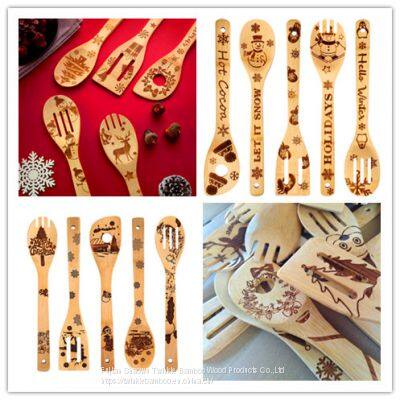 Christmas kitchen gift gadget bamboo utensil set,bambu kitchen cooking tools,bamboo wooedn spoon set