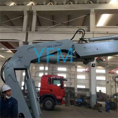 The telescopic folding marine deck crane is improved on the basis of the telescopic crane, through the electric motor to provide power for the hydraulic cylinder, to control the telescopic boom, folding, steering, to achieve the transfer of goods.