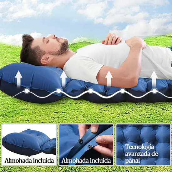 La almohadilla para dormir exterior mejorada es ergonómica y la almohada inflable está diseñada para soportar perfectamente la columna cervical y darte un mejor sueño; ideal para acampar, andar en bicicleta, hacer senderismo y otras actividades al aire libre. También se puede utilizar como tapete de playa y tapete temporal para invitados.