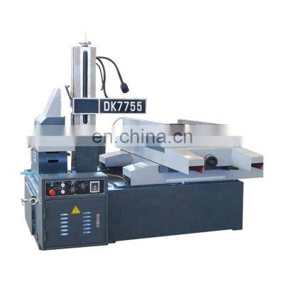 Product DescriptionMain Features:DK7755 wire cutting machine body is the use of high-strength cast iron (HT250) forming the base for the machine load-bearing parts. Integral structure, DK7755 wire cutting machine casting body are used resin casting technology casting (walking wire on the use of this technology), two high-temperature annealing, DK7755 line cutting machine in the same type of machine weight is also large, to ensure that mechanical precision The constant change.SpecificationDK7755Working table travel550mm*850mmCutting the maximum thickness of the workpiece600mm AdjustableWorking table size750mm*10500mmCutting the workpiece the maximum taper 30°Maximum cutting efficiency100mm2/min (Cr12 40mm thickness)Maximum cutting current5ARoughnessRa≤2.5μm (Cr12 40mm thickness)Precision0.015 (Φ10mm)Machine power consumption3kwElectrode wire diameterΦ0.18mmTake the wire speed11m/sDrive modeStepperControl methodOpen-loop controlMachine Dimension1865mm*1720mm*1700mmWeight of machine bed2450kgCompany ProfileFAQQ1: How is the warranty? A1: Warranty time is 13 months after BL date. Q2:Can we visit your factory before order? A2:Sure.All new and old friends are welcomed to visit us at our factory. Besides, we can pick up you at the station or airport if needed. We will be very honored to help with tickets and accommodation booking. Q3:Do you have a stock? A3:Sorry, most of our machines don’t have stock, we always produce according to order. However, if during fairs months, maybe have few samples back from fairs. Q4:What’s the MOQ? A4:One set only. Q5:How about your quality? A5:We have approved the ISO9001:2008 Quality management system.ISO14001 Environmental management system, OHSAS18001 International occupational health and safety management system, and Social Accountability 8000(SA8000). Most products have been approved by the European and American safety standards, including CE, GS, EMS&UL,90% of our products are exported to more than 60 countries and regions around the world, especially to Europe and America market and always win high reputation. So you can rest assured of our quality products and our best services. Q6:Do you have professional engineers? A6:Yes.we have professional engineers and designers. We can provide OEM services. Q7:Can you provide customized machines? A7:Yes, we can design and manufacture according to your specific requirements.