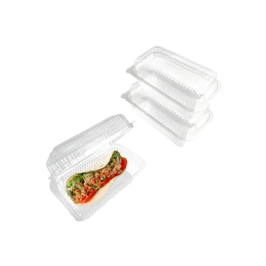 Product Details This clamshell box is designed in a fully transparent color with excellent clarity, allowing you to see the packaging items inside. And its rectangular shape provides ample space to accommodate a variety of foods, whether it's delicious burgers and salads, or delicious main dishes and desserts. And it is easy to carry, ensuring that your meals remain fresh and intact during storage and transportation, making it very suitable for various occasions. Whether you are a restaurant owner, food supplier, or an individual looking for a reliable delivery method, this clamshell box has multiple options.