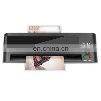 Product DescriptionPaper Passport A4 A5 A6 Laminating Table Film Automatic Hot Pouch Mica Para Laminadoras Plastic Laminator MachineProduct NameHome LaminatorModel NOOL143BrandWillingRoller2 rollersBody ColourBlackFunctionCold & hot laminatorApplicationsMax A4 sizeEntry width230 mmWarm up time3-5minMax lamination thickness0.5 mmLamination speed250mm/minPouch thickness75-125micProduct size335x130x91mmColor box Size355*143*98mmCarton size370*310*308mm,6pcs/carton Volume/CTN0.035CBMN.W0.93kg/pcBatch order Lead time45days G.W7.3kg/cartonCertificationGS CE EMC Sale serviceVideo support, online supportWarranty1 Year Feature Model OL1431.Modern unique mini design.2.One Button jam release.3.Overheating protection.4.ON/OFF,easy to operate.5.Versatile Application - An ideal tool for any home, office, classroom application.6.Double rollers system prevents jam, wrinkles or curling the edge; completely neat with zero air bubbles and low noise. Related ProductsCompany InformationLong-term PartnerCompany PicturesCertificatesExhibition PicturesPackaging & ShippingFAQ