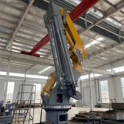 The telescopic folding marine deck crane is improved on the basis of the telescopic crane, through the electric motor to provide power for the hydraulic cylinder, to control the telescopic boom, folding, steering, to achieve the transfer of goods.
