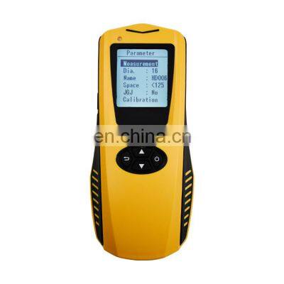 Portable Concrete Rebar Detector Concrete Cover Meter for saleUsage OverviewThe first generation portable rebar integrated detector uses an electromagnetic induction method, which can detect the rebar location and cover thickness & diameter accurately, store, transfer and analyze the real time test data. The model is the pinnacle of work with the modern simple design, incorporating the handy & durable features and sophisticated electronic technology. series rebar detector is mainly used to test the location, distribution, direction, the thickness of rebar and the diameter of cover in concrete structure such as walls, columns, beam-slabs etc. It can also detect the location of pipelines and metal embedded parts. The multiple coil structure design make it more accurate&responsive and higher resolution.Product DescriptionSpecificationItemsTechnical Spec.Diameter Measuring Range(mm)Ф6~Ф50Measuring Range(mm)Location Range: 1~120First Range: 1~60Second Range: 30~120Thickness Measuring Accuracy(mm)1~40±141~60±261~80±381~100±5101~120±8Rebar Location Accuracy1~60±361-120±6Diameter MeasuringModesOptionalJGJ MeasurementOptionalData StorageOptionalOff TimeAutomaticPower SupplyRechargeable Lithium BatteryWorking Temperature-10℃~+42℃Size(mm)188×145×140Weight(kg)0.745Unpacking displayOur AdvantagesInstallation and training · If buyers visit our factory and check the machine, we will teach you how to installand use the machine, and also train your workers/technician face to face. · Without visiting, we will send you user manual and video to teach you to install and operate.After Service · One year guarantee for whole machine. · 24 hours technical support by email or callingAny questions, please contact me without hestitation, welcome your inquiry!Price can be negotiatedour customerCompany Profile ` Cangzhou Lovely Group Co.,Ltd. is a professional manufacturer specializing in Testing Equipment,Universal Testing Machine ,Asphalt Tester,Test Moldsand Soil Road Lab Tester,supply verious type of products ..... We assure high quality to you. · All our products are made in China .Excellent quality with competitive pricePacking & Delivery · Tianjin port or Qingdao Port deliver by sea and Also can ship by air via express companyFAQQ1: Are you a factory or trading company? A: We are a factory specializing in manufacturing all kinds of scaffolding material.Besides, we could also purchase products as request. Q2: Where is the loading port?A: Tianjin port or Qingdao Port.Q3:How to choose the Transportation Term? A:Usually,we may according to your needs,we may choose the most rasonable freight,thento select for you. Q4: What certificates do you have? A: We have ISO 9001, CE, SGS. Q5: Do you have an OEM service? A: Yes. We can provide OEM services according to your requirements.Q6: What are the payment terms? A: T/T payment is preferred and other could be accepted, such as L/C, D/P, Western Union, PayPal etc. It is negotiable.Related Products