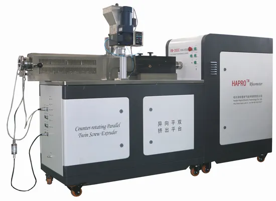 Parallel twin screw extrusion unit (co- rotating), widely used in rubber and engineering resin blends, dispersion, modification, enhancement, chlorinated polypropylene and high water absorbing resin devolatilization, Biodegradable master batch,polycondensation of polyamide, polyurethane addition polymerization reaction extrusion; carbon powder, magnetic powder pelletizing; cable insulation material, sheath material,low smoke and low halogen flame retardant PVC cable and all kinds of silane cross-linking material preparation, etc. Dedicated to the extrusion forming process, for example the pelletizing experiment.