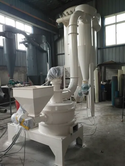 Product Description The material that has undergone initial cleaning and magnetic separation enters the crushing chamber through the spiral feeder for crushing. Due to the high-speed rotation of the grinding disk, the material is crushed by the impact of the hammer blade mounted on the grinding disk under the action of centrifugal force, and then spun at a very high speed onto the surrounding gear ring. Due to the small gap between the hammer blade and the gear ring, it is further crushed here. The crushed material is carried between the inner wall and the splitter cover by the airflow entering from under the crushing disc, and then enters the classification chamber. It is classified by the combined action of wind, gravity, and centrifugal force of the classification wheel. The separated coarse material returns to the crushing chamber from the inner cavity of the splitter cover and is re crushed. The fine material (finished product) is sucked into the classification impeller, enters the discharge chamber, and enters the air mesh system from the discharge port.