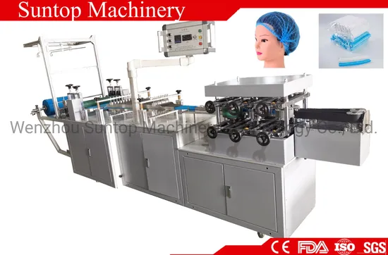 Bouffant Cap Machine Medical Nursing Cap PE Head Cover Non-Woven PP Mop Cap Strip Shower Cap Disposable Cap Making Machine. It adopts ultrasonic heat sealing method, frequency conversion speed regulation, and produces non-woven materials and plastic film materials. The disposable dust-proof non-woven strip caps are integrated into the finished product from feeding to finished products. You just feeding the material (Non-woven or PE Plastic film and rubber band ),then you will get final product.