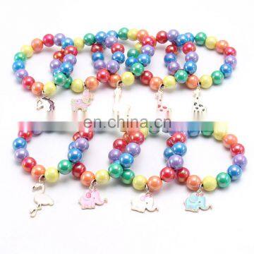 Girl Rainbow bracelet Children Colorful Beads with alloy pendants Girl Gift 9Colors