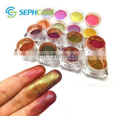 Product DescriptionSephcare color shift multi chrome pigment color change chameleon/cameleon pigment for cosmeticChameleon chrome powder is unique, multi-layer pigment flakes that give paints, coatings, plastics, textiles and packaging the ability to change color when viewed from different angles. Created using a revolutionary thin-film technology, each flake exhibits a wide range of hues depending on the angle at which it is viewed and the angle of incidence of light--a dramatic color shift that is even achievable in low-light environments. Highly chromatic, durable and easy to incorporate, ChromaFlair pigments can add value and appeal to virtually any product where color is a key differentiating factor.Item Name Chameleon pigmentColor2 color shift,3 color shift and 4 color shiftParticle Size10-60μmApplicationCosmetic Pigment, Coating Pigment, Ink Pigments, Leather Pigments, Plastic & Rubber Pigment PaymentTT/Paypal/Wester UnionShipping By Fedex/DHL, Air, SeaDetailed ImagesOur CompanyOur ServiceTo support all the demanding customers, we are going to focus on value addition in order to satisfy the needs of all our customers. The valued-added service spans:1.Special Packings 2.Own Brand Labeled 3.Product Images Support 4.Formulation Guideline Support,etcPacking & DeliveryAll freights are determined based on the weight of the item and the destination. 1.1kg with double plastic container inside/Aluminum foil bag outside. 25kg with double plastic container inside/Fiber drum outside or it is at your option.2.Dispatch goods Usually via DHL and FEDEX, but other kind of shipping ways can be negotiated.3.Delivery Time: 7 days after payment.FAQQ1: How can I place order?A: You can send inquiry to us or start a chat online with me first.Q2: Do you provide samples?A: Yes. Sample pack can be send to you, please tell us your usages, also need your shipping address and post code.Q3:How can I pay for you?A: We accept Online bank payment,T/T and Western Union and Trade Assurance. Before you pay, please contact us for payment details.Q4: Can you do OEM for me?A: Yes, we are good at OEM order, just provide us what you want and we can give the best design.
