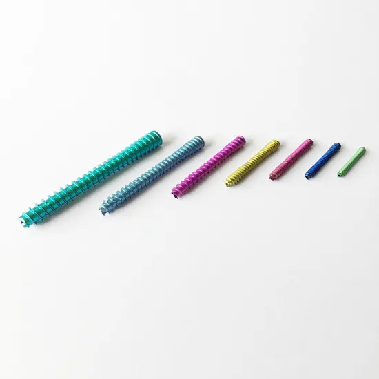 Features & Benefits | -headless and low profile lessens soft tissue irritation -cancellous thread profile for maximum pull-out resistance -cannulated screw may be inserted percutaneously over a guide wire (thread and non-threaded guide wires available) - self-drilling and self-tapping flutes facilitates screw insertion - fully threaded - reverse-cutting flutes facilitates implant remove |