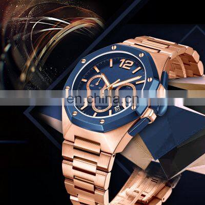 SpecificationHot Sale steel watch custom logo men quartz relogio Chronograph Movement 10ATM rose gold luxury watches men wristCaseMaterialStainless SteelSize42 mmWaterproof10 ATMGlassMineralStrapMaterialSiliconeWidth26-22 mmBuckleFold BuckleDialMaterialCopperMovementModelMiyota JS25 Multifunctional QuartzDetails ImagesTransaction Flow1stDiscussion & Confirmation of Design2ndConfirmation of Down Payment3rdSample / Mass Production4thConfirmation of Balance Payment5thDeliveryPayment Term & Lead TimePayment TermSample100% pay before productionBulk30% pay before production, 70% pay before shipmentPayment Method Trade AssuranceLead TimeSampleWith Your Own LogoIf Cases in Stock30 DaysWithout LogoIf Cases in Stock3 DaysWith Your Own LogoCustomized Cases50 - 60 DaysBulkWith Your Own LogoIf Cases in Stock40 - 50 DaysWith Your Own LogoIf Cases Out of Stock50 - 60 DaysServiceOEM / ODM AvailablePacking & DeliveryFree Paper BoxA watch packed by a plastic bag, 10pcs watches packed by a paper box. Free Foam BoxA watch packed by a plastic bag, 10pcs watches packed by a foam box.PU Leather Gift BoxWe understand customers request customized gift boxes for the customized watches, as a manufacturer, we are able to offer one station service. MOQ: 500PCSIn addtion, if you have your own box supplier in China, the boxes can be sent to us for packing for free.Company ProfileHK Watch FairAs an expereienced watch manufacturer in China, Dualtime attends HK Watch Fair every time, to exhibit new designs and hot sellers, which have caught visitors eyes and help it develop customers from all over the world. Dualtime Case WorkshopDualtime focuses on high end watch, attaches great importance of quality, that's why it has self own case manufacturer, it can control the lead time and quality easily.Dualtime Dust Free Assembly WorkshopDualtime gathers some sophisticated assembly staffs, which specializes in assembling watch with complicated movements, they need to keep all watches working normally.Dualtime Quality Control WorkshopDualtime gives priority to the quality, it is vital element for the transaction. Therefore, Dualtime has different quality control teams for the incoming material, semi-finished watch and finished watch. Quality is life.Dualtime Quality Control Machines(Some of them have been uploaded as following)Waterproof Test MachineThis machine is for 1-30ATM Waterproof, to find out which ones cannot reach waterproof request level.Strap Durability Test MachineThis machine is for durability of strap, to see the straps can be folded for how many times and durability level.Shock Test MachineThis machine is for shock test, to assume that whether the hands will be loosed during transportation.Dualtime Clients Meeting Dualtime enjoys high reputation in watch field, a plenty of customers from different countries have come to visit Dualtime and their watches with joy. It is easier for us to understand each other and discuss business.If you have any interests, welcome to visit us!Dualtime Responsibility & PhilosophyDualtime has mature working systems, with sophiticated engineers, excellent designers and professional international salesman. We follow up the trend of watch fashion closely, create new and stylish designs every month. In addition, if customers have any ideas for their own watch, we can get some inspiration from their ideas and design what they need. Absolutely, design is important, but the quality is the most important, we have never made any compromising on quality, that's why we are able to win and keep long term cooperation with customers from America, Canada, Swiss, Japan, Netherlands, United Kingdom, Spain, Belgium, France, Singapore, Russia and so on.Dualtime always puts customers requirements at priority.