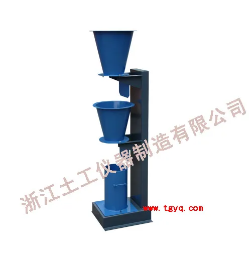 2.Comprising two conical hoppers having a hinged trap door attached to the lower end of each hopper,allowing the concrete sample to flow freely into the cylindrical mould. |