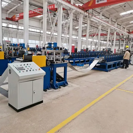 Uncoiling → Leveling → Looper (Storage) → Servo Feeding, Pre-cutting → Looper (Storage) →roll forming → Spot Welding→cutting→discharging.
