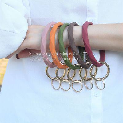 Car Keyring Silicone Bracelet Keychain Faceted Round Bangle Wrist Key Ring
