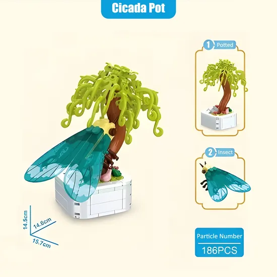 Educational Building Block Cicada Potted Simulation Flower Pot Culture Toy