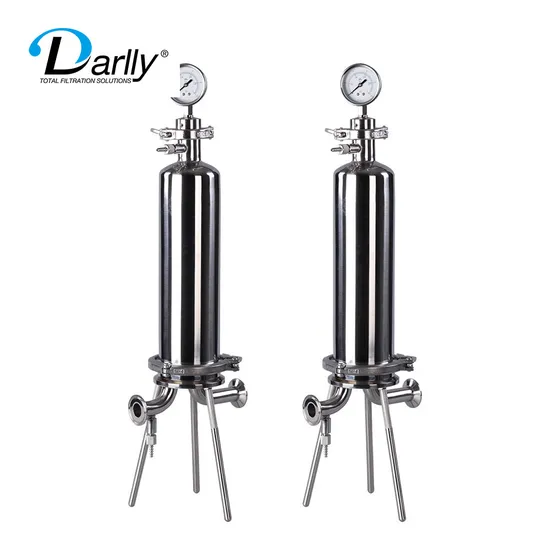 A Series Single Cartridge Filter Housings used for small flow rate liquid filtration,it is constructed of stainless steel material,inside and outside surface is electropolished finish,sanitary grade.It has the vent valve and clean drain,hose barb port.