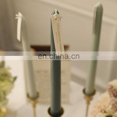 Product DescriptionColumn wax Wholesale wedding birthday candles glass jar candles with Jelly Paraffin Wax Soy wax dried flowers luxury scented candlesProduct nameMorandi Column waxColorGradient: pink, purple, coffee, orange, blue, greenPure colors: white, rose pink, lavender, light pink, light gray, champagne, bean greenIngredientsParaffin wax, carnauba wax,soy bean wax,fragranceCandle size2.2*25cmPackage size13*29.5*2.5cmCarton36PCS/cartonScentwhite: vanilla milky,rose pink: fragrant rose, lilac: lavender, light pink:fragrant rose, light gray: wildbluebell,champagne: red orange , bean green: ocean forestOrange(pink)Fig(red)Deep blue water(blue)Gradient pink: fragrant rose, Gradient purple: lavender, Gradient coffee: vanilla milky, Gradient orange:red orange, Gradient blue: wild bluebell, Gradient green: ocean forestBurning time4-5HShelf life3 YearsOur AdvantagesCompany IntroductionFAQQ1. Are you a Trade company or a Manufacturer? Our company is a leading manufacturer and exporter of Aromatherapy products. Our factory have been in this line for more than 17 YEARS. Q2. Could you make a special design for me?Yes, of course. We have professional designers who are rich in experience. We can design according to different customer needs.Q3. Is there anything special about your candle?Wick is the soul of candles.We have 100% cotton wick and 100% natural fiber wick that import from the USA.We will use the wick that suits the candles best to guarantee it is burning perfect.And we use 100% natural soybean wax and best perfume or our natural essential oil.Q4. Do you have certificates or any test reports?For certificates, we have MSDS.And our candle factory have BSCI,we cooperate with Russia Disneyland for Party Candles, and USA Dollar Tree market.Q5. Is your essential oil pure? Yes, Our raw materials are sourcing all over the world, and we also have our planting base in Yunnan.We guarantee that our essential oils are natural and pure,not add any base oil.Q6. What is your sample policy?We can supply the sample for free if we have ready parts in stock, but the customers have to pay the courier cost. Q7. What’s your OEM MOQ?Generally, our OEM MOQ is 500pcs-1000pcs, but if we have ready parts in stock, like the Black candle glasses and black box , we accept small orders like 100pcs.If we don't have the ready parts in stock and need merchandise from the parts factory, that will need high MOQ. That depends on your specific inquiry of candle.