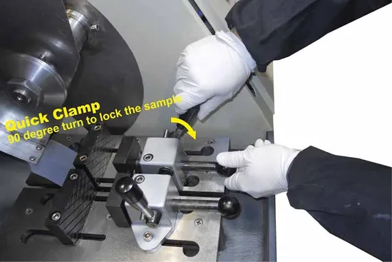 SYJ-50 is a CE certified heavy-duty, benchtop, wet abrasive cut-off saw. It is designed for cutting metallographic samples effectively without sacrifice safety. Quick vises are included to allow you easily and quickly tighten samples. The 10" SiC (or diamond) cutting blade is used for cutting almost all kinds of materials with a maximum sample size of 50 mm O.D. Coolant pipelines are built in to supply coolant directly on the sample to avoid overheating during the cut.
