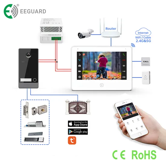 2-Wire 7" TCP/IP WiFi Touch Screen Video DoorPhone Intercom Tuya Villa Kit