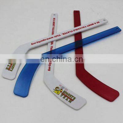 Hockey Stick Hot Selling Custom Wholesale Cheap Mini Hockey Stick Composite Field Hockey Stick Product Descriptionice hockey stick picture Details description of ice hockey stick1) PS material, eco-friendly2) OEM size and logo availble2) Color as per pantone3) Cheap for promotion gift Specification of ice hockey stickModel NO.PT92184Specificationice hockey stickMaterial PSSize of holder45*4*0.7cmUnit weightabout 80gLogoSilk screen or embossed or debossedColor As per pantone Details pictures of ice hockey stick / ice hockey stick / ice hockey stick / ice hockey stick / ice hockey stick Packaging & ShippingPacking details for ice hockey stick100pcs/polybag, 100pcs/ctnCtn size: 49*25*29cmG.W./N.W.: 10/8.5kgsor as per custom Our Services1) Your inquiry will be replied within 12 hours.2) Well-trained & experienced sales can reply your inquiries in English.3) Working time: 8:30 am ~6:00 pm, Monday to Friday (UTC+8).During working time, E-mail will be replied to you within 2 hours4) OEM & ODM projects are highly welcomed. We have strong R&D team.5) The order will be produced exactly according to order details and proofed samples. Our QC will submit inspection report before shipment. 6) Your business relationship with us will be confidential to any third party.7) Good after-sale service. Company InformationNingbo Pinbo Plastic Manufacturer is one of most competitive supplier specializes in promotional gift items, was established in 2006. With more than 160 persons and many modern facilities, currently, we have already exported to America, Europe, Japan, Mexico and 20 other countries and regions. Your OEM and ODM product are welcome, our 6 experienced engineers and designers can work on your ideas. We regards “high quality, competitive price, on-time delivery, and fast and effective communications” as our tenet, hope to cooperate with more customers for mutual development and benefits. FAQ1) Moq is 5,000pcs2) Color as per Pantone3) Logo as per your artwork4) It cost USD50 and 5 days to make samples with your color and logo, it is refundable5) Our partners: