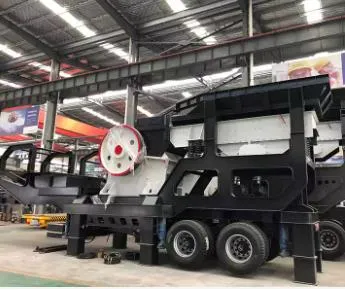 The mobile crushing plant includes vibrating feeder, stone crusher, vibrating screen, belt conveyor, magnetic separator etc. When gravel stone is fed