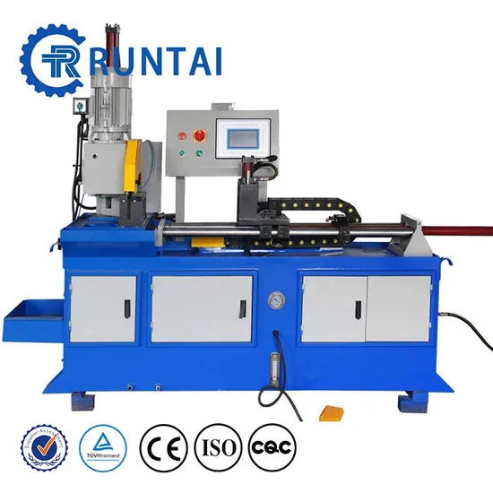 RT-425CNC is fully automatic pipe cutting machine with PLC control system, servo for cutting, Touch screen panel display English and the Language you required, have different cutting leght, dialogue operation, can choose manual , semi-automatic and full automatic operation manual, portable pedal switch with start and emergency stop function.