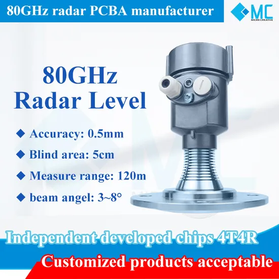 Microcreative 80GHz Milimeter wave radar level meter, it is a universal sensor for continuous level measurement of liquids and bulk solids under all process conditions. Due to its application-oriented configuration and setup, it offers a reliable and economical solution for all level measurement applications. Meanwhile, it ensures maintenance-free operation in all applications because it has variable antenna systems. |