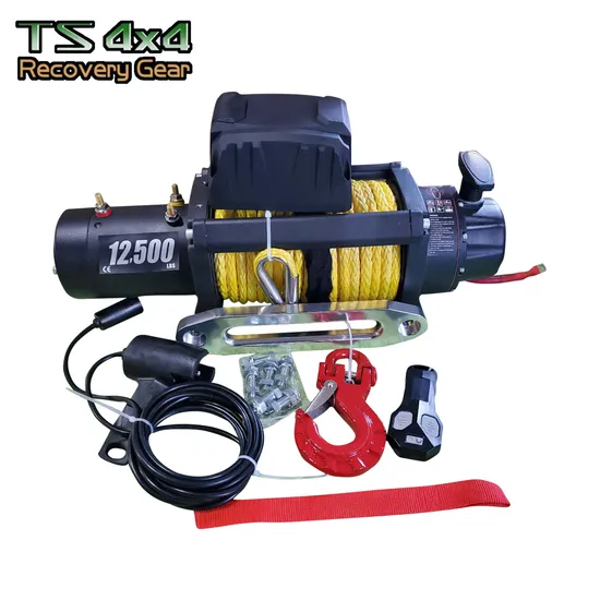 Product Description Rated Line Pull: 9,500 lbs.(4310 kgs)Motor: 12V 6 hp (4.48kw ),High output parallel series woundElectrical controls: ContractorRemote Control: Remote switch,12'(3.7m) leadGear train: 3-stage planetaryGear ratio: 216:1Clutch (free-spooling): Sliding ring gearBrake: Automatic mechanical cone brakeRope: 25m,8.5mm diamFairlead: Roller fairleadRecommended battery: 650 CCA minimum for winchingBattery leads: 2 gauge,72'(1.83m)Drum diameter/Length: 2.5"/9.0"(6.4cm/23cm)Weight: 80 lbs.(37.5Kgs)