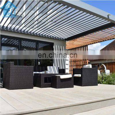 Product NameModern design bioclimatic motorized aluminium louvered pergola Materials Details1,Post: aluminum alloy 6063 T5 2,Blades : aluminum alloy 6005 T5 3,Beams: aluminum alloy 6063 T5 4,Gutter :100x100x2mm colors can be customizedControl wayMotorized/ManualFunctionWaterproof ,sunshade,windproof ,snowproof, house space extendingApplicationVilla,balcony ,garden ,backyard ,roof ,restaurant,decking ,swimming pool and so onWind Resistant180-220 KM/HSnow Loading60-100cmSizePopular standard size:3x3x2.5、4x3x2.5、5x3x2.5、6x3x2.5 or can be customizedOther related materialsSide screen/curtains, side shutter ,LED lights,heater ,fans,glass doors,outdoor furnitureInstallationWe will provide very detailed drawing and video for the installationOthers1.MOQ:1 set, we welcome small order 2.Production: we are factory , we can provide 10-15days fast production time 3.Warrenty:10 years 4.Color:White, Grey, Black, or customized colors availableFAQQ1. Is this aluminium louvered pergola easy to install?A: We have the assembly manual instruction specifically made according to your project site. It's a DIY product designed to be easily assembled and we can provide installation video.Q2. How long is your products' warranty?A: All our products have 10 years warranty.Q3:How to guarantee the quality of the products?A:We have our own QC team to control the products quality for all our clients'orders before loading.Q4. How can i get a price of needed aluminium louvered pergola?A: Please give the exactly size and quantity of your required aluminium louvered pergola. We can give you a detail quotation and free design solution based on your requirements.Q5.I am a small wholesaler, do you accept small order?A: It's no problem is you are a small wholesaler, we would like to grow up with you together and our MOQ is 1 set.Q6. Is my first time to export from China, what if i have no experience?A: Don t worry, we have very professional sale will guide for and we can provide one stop solution including deliver the door to your home address with customs.Q7. What kind of payment terms would you accept?A: We usually accept T/T, L/C, Western Union, etc. If you prefer other payments terms, please feel free to discuss with us.Q8. What if i meet the problem after installing and using this aluminium louvered pergola?A: As our principle is our business had been built on hoes & backed by customer service.we are verified supplier in Alibaba. com and our can provide 10 years warranty, so if you meet any problem for using thisaluminium louvered pergola,welcome to contact.