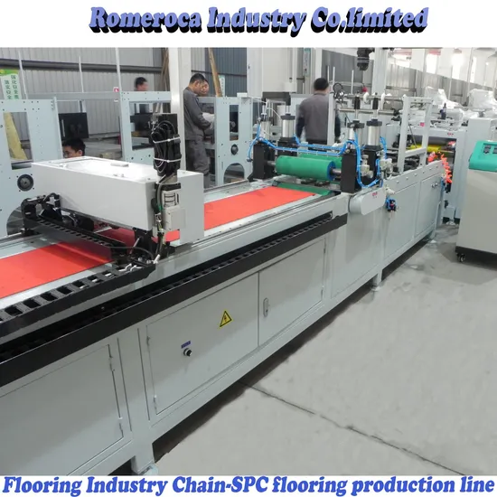 SPC Flooring Film Pasting Machine is working for SPC Floor to paste the IXPE on the back of floor, to give the floor more soft walk feelings.This machine include the loading floor, rolling the glue, stick the film, auto cutting, conveyor and then repair the IXPE Film. Product Description