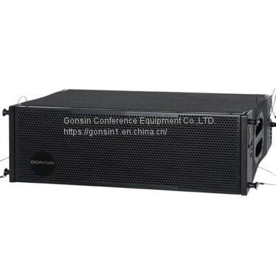 The GX-SP2012DL-Z line array 12 is a large-scale two-way crossover system providing a bandwidth of 55Hz-20KHz. Our 12-inch line array speakers are fitted with two British top-level 44 mm voice coil HF drivers coupled to a special constant-path aluminum horn and two 12-inch LF drivers with great dynamic margins. It produces strong penetrating power, clear and thick vocals and super high sound pressure levels. The whole speaker of 12-inch line array is beautiful and concise in shape, and exquisite in appearance, which is an extremely competitive large-scale line array system.