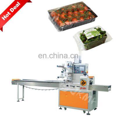 Long Service Life Fresh Vegetable and Fruit with Tray Packing Machine and Frozen Vegetable Pillow Packing MachineProducts DescriptionMachine ApplicationAutomatic flow packing machine is a widely used packing machine. Suitable for all kinds of product packaging. Including medical supplies, vegetables and meat, baked bread, snacks and candy, daily necessities, hardware accessories, etc.Machine InformationModelJK-250XJK-350XJK-450XJK-600XJK-700XFilm WidthMax.250 mmMax.350 mmMax.450 mmMax.600 mmMax.700 mmBag Length45~330 mm65~330 mm120~450 mm130~450 mm120~600 mmBag Width30~110 mm50~160 mm60~210 mm60~280 mm50~330 mmProduct HeightMAX. 70 mmMAX. 80 mmMAX. 110 mmMAX. 110 mmMAX. 150 mmPacking Speed40~230 bags/min40~230 bags/min30~150 bags/min30~180 bags/min20~120 bags/minPowder220V,50/60Hz,2.4KWMain Features1.Dual frequency conversion control, Bag length can be set and cut in one step, saving time and film.2.Interface features easy and quick setting and operation.3.Self failure diagnosis, clear failure display.4.High sensitivity photoelectric eye color tracing, numerical input of cutting sealing position for extra accuracy.5.Temperature independent PID control, more suitable for packaging different materials.6.Positioned stop function, without sticking knife or wasting film.7.Simple driving system, reliable working, convenient maintenance.8.All control is realized through software, easy for function adjusting and technical upgrade.Optional DevicesDepending on your needs, you can choose to add the following configuration. For example date printer, linking bag device, gas-filled device, easy tearing device and hole device.Machine Working Process1st step: Put the packaging film on the holder and wear the film as required.2nd step: Setting the parameters you want by touch screen.3rd step:Put the materials to be packed on the conveyor belt4th step: The bag former will make the bag automatically.5th step: The horizontal and vertical cutter device will seal the middleand of the bag.6th step: You will get the nicely paper or plastic bag type.Why Choose UsJIKE BEE MACHINERY has a professional team to provide customers with various packaging solutions. Fully understanding the needs of customers,engineers design the most suitable solution. We have our own processing and assembly workshop and quality inspection and debugging process to ensure the quality of the machine. After acceptance by the customer, they are packed in international standard wooden cases and shipped.We will package the machine's instruction manual and a USB flash drive with machine operation videos together with the machine.Ensure that you can use the machine as soon as you receive it. If you have something you don't understand, our after-sales team will also help you answer in time.Company ProfileFoshan Jike Bee Automation Equipment Co., Ltd. is a manufacturer of automatic packaging equipment.We are a production-oriented enterprises focused on product innovation, factory direct sales and perfect after-sales service in one.The automatic packaging equipment for granule, powder, liquid and sauce produced by the Jason company is at the advanced level of the industry,it can be customized production automatic material packaging line for all kinds of products .Mainly applicable to: food, hardware, drugs, daily chemicals, pesticides, fruits and vegetables, cosmetics, other industries.The company has its own patent and product technical certification, which can bring customers high quality equipment and worthy of customer trust.Customer PhotosOur customers have covered more than 80 countries around the world.And give us unanimous praise.CertificationsFAQQ1:Do you have manual or operation video for us to know more about the machine? Yes, not only manual or operation video, 3D drawing also available to make as per your design,also the video we can make of testing the material from our packaging machine if your packing goods easier for us to find from our local market. Q2:How can I trust you for the first time business ?Please note our above business license and certificate. And if you don't trust us, then we can use Alibaba trade assurance service, guarantee your money, and guarantee your machine's on-time delivery and machine quality.Q3:Is engineer available to serve oversea?Yes, but the travel fee is paid by you. So actually to save your cost, we will send you a video of full details machine installation and assist you till the end.Q4:How can we make sure about the machine quality after we put the order?Before delivery, we will send you the pictures and videos for you to check the quality, and also you can arrange for quality checking by yourself or by your contacts in China.Q5:Will you provides the door to door service?Yes. Please offer us your final destination, we will check with our agent to see if it available, and most of the area is ok for us to clearing and sending in your countries.