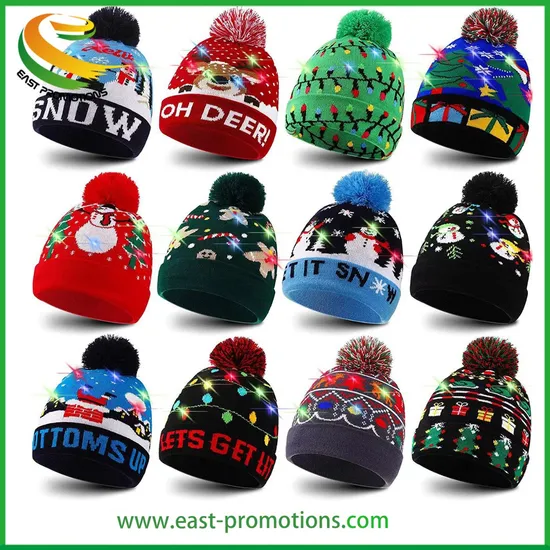 2024 New Pompom Christmas Hats winter warm Knitting Christmas LED flashing Beanie hat Product Description Key Words for Wholesale custom acrylic men pompom jacquard knitted sport winter footy bobbles beanie cap hat for men bonnet 1,unisex knitted beanies 2,custom embroidery logo for men women 3,fisherman skully beanies