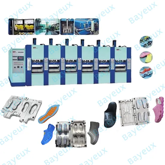 The EVA injection shoe machine is a highly efficient and advanced equipment used in the manufacturing process of EVA shoes. This machine utilizes air pressure to foam and shape the molten EVA material into various shoe designs, ensuring precision and consistency in every pair produced.