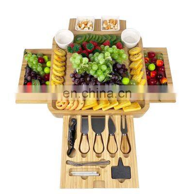 Bamboo Wood Charcuterie Platter Magnetic Slide-Out Drawers Cheese Board Set With Cutlery Knife