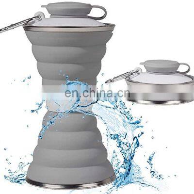 | Space Saving Silicone Foldable Sports Bottle Travel Outdoor Folding Cup Stainless Steel collapsible Silicone Telescopic Cup