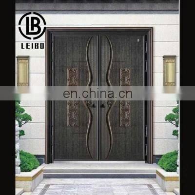 Product SpecificationBody Size0.6mm/0.8mm/1.0mm galvanized plateFalse Frame1.5mm/1.8mm Galvanized SteelFrame1.5mm/1.8mm Galvanized SteelPASSAGE MEASURES1 LEAF DOOR: 90X210 80X2102 LEAF DOORS: 120X210 110X210OUTSIDE SUBFRAME MEASURES1 LEAF DOOR: 103X217 93X217 2 LEAF DOORS: 133X217 123X217OUTSIDE PANELMelamine / Molded Veneer/PVC Steel PannelINSIDE PANELMelamine / Molded Veneer/PVC Steel PannelInsulationWith Expanded Polyurethane.Hinge BoltsOn the lateral side made of 3 mm thick steel plate in order to prevent the door's disruption.LockEuropean cylinder lock protected by anti-shock and steel defender. 1 temporary and 5 final keys.Special Anti-drill PlateBehind each security lock for added protection.Opening LimiterAlso called security block. Easy to use from the inside by a doorknob in the upper side of the door.Adjustable Draft ExcluderAutomatic drop draft- excluder ensure hermetic seal against air and light.PeepholeWide-angle lens.ACCESSORIES20 years warranty internal and external PVD accessoriesCERTIFICATE EN1627ENERGY SAVING CERTIFICATESU Value: 1, 7 W/m² KAcoustics: 34 dbWatertightness: Class 4AWindtightness: Class 5CAirtightness: Class 3Company InformationAbout UsFoshan Leibo in 1998 and developed trade business in 2005, Foshan Leibo Cunstrction Material Factory has experience inmanufacturer and exporter more than 12 years. We are specialized in the development and production of aluminium doors&windows,aluminum balcony&handrails, steel door , stainless steel door , iron sheet etc.All of our products comply with internationalquality standards and are greatly appreciated in different markets throughout the world.Our CustomerProduct CertificationProject CooperationPackingFAQQ:What is your main production ?A: We are major in making the security doors products.Such as Bulletproof Doors,Copper Doors,Security Steel Doors,etc.Q: Is your company the factory or trading company ?A: We do have our own production line of quality security doors, at the same time,with more than 10 years experience of exporting doors to all over the world, wecombine difference cooperated factories as an union to provide one-stop purchaseservice of all kinds of doors.Q: How is your packing ? A: We use different methods of packing depends on different doors and our customers'demand, and we also accept OEM of customers' brands. Usually for most of the productswe use 5- layers carton package. Q:How is your company products quality ?A:Our company products all produced in factory,by three times QC check.During produce,after produce and before pacakge .Just believe in us.We will do good quality products for you .