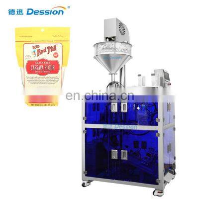 Hot sell automatic pouch packing machine powder instant drink powder machine ziplock bag filling machineProduct DescriptionOne machine for your current and future needs! The versatility of DESSION pouch packing machines for the filling and sealing of stand up bags allows you to customize your machine to meet the current needs of the market and your individual technical requirements!Using DESSION Stand-up Pouch packing machines for packaging premium pieced products and powdered products into doy pack bags and zipper doy pack bags, such as coffee, tea, biscuits, nuts, cereals, chips and many others.Packing speed15-25bags/minuteAvailable bag length150-200mmAvailable bag width100-200mmVoltage220V 50HzAir pressure0.6MpaPower1.5KWMachine size1020*980*1740mmMachine weight230KGFully automated packaging machine with automatic weighing, filling, date printing and sealing. To change bags of different sizes,just adjust the bag holder and modify the parameters on the screen. Simple operation.Auger measuring partThe product accurately weighs the required weight through an augerBag Given DeviceDepending on the size of the bag, the size of the bag holder can be customized or adjusted so that the machine can grab the bag.Date printerSet the corresponding date on the screen as required, and the machine will automatically print on the bag.Bag Opening DeviceThrough the suction ports on both sides of the devi.ce, the bag can be opened quickly and efficiently.Sealing DeviceThe sealing device is sealed by a high-temperature mold.If you want to get best price,please contact me!!SALES MANAGER: KENNY LEEMobile/Whatsapp/Wechat: +86 13380522184Related ProductsIf you need to pack a larger weight, we can also provide you with more machine options.Our CompanyCertificationsPacking & DeliveryPayment1.T/T and Western Union are accepted2.30% deposit before production and 70% balance before shipment3.All banking charges outside China are on buyersShipping1.Upon receipt of payment , delivery date will be in 15-30 working days,2.By Air, by Sea or by Express (DHL etc)3.Shipment cost will depend on the destination, shipment way and the weight of the goodsFAQQ1:Do you have manual or operation video for us to know more about the machine? Yes, not only manual or operation video, 3D drawing also available to make as per your design,also the video we can make of testing the material from our packaging machine if your packing goods easier for us to find from our local market. Q2:How can I trust you for the first time business ?Please note our above business license and certificate. And if you don't trust us, then we can use Alibaba trade assurance service, guarantee your money, and guarantee your machine's on-time delivery and machine quality.Q3:Is engineer available to serve oversea?Yes, but the travel fee is paid by you. So actually to save your cost, we will send you a video of full details machine installation and assist you till the end.Q4:How can we make sure about the machine quality after we put the order?Before delivery, we will send you the pictures and videos for you to check the quality, and also you can arrange for quality checking by yourself or by your contacts in China.Q5:Will you provides the door to door service?Yes. Please offer us your final destination, we will check with our agent to see if it available, and most of the area is ok for us to clearing and sending in your countries.Our Service