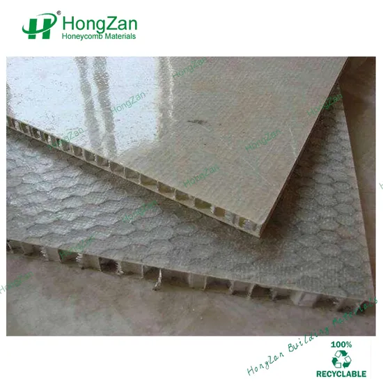 Fiber Reinforced Polymer/Plastic (FRP / GRP) composite material is a high performance material which is made of fiber and matrix materials (resin) and mixed with certain proportion. The structure of FRP Honeycomb Panel is FRP / GRP sheet as outer surface, PP plastic honeycomb panel / aluminum honeycomb core / PU foam / plywood as core.