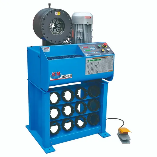 Advantages Of Hose Crimping Machine KM-91H-6 1).Microcomputer control, accuracy and reliability; 2).6 functions, can be quickly selected; 3).Select import cartridge valves, performance steady; 4).Suitable for quick chang tool.