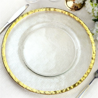 Clear Hammered Glass Wedding Charger Plate With Gold Rimmed