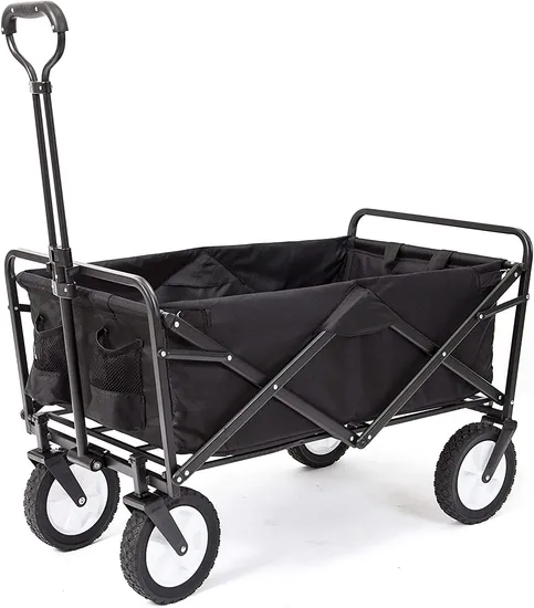 [Functional Features] Include an adjustable handle for effortless transport and 2 Mesh Cup holders to keep your beverages secure. [Reliable & Smooth Transport] Constructed with a strong steel frame, our collapsible wagon could transport up to 200 lbs. All-terrain wheels' built-in double bearings ensure smooth pull and easy transport on multiple ground surfaces. [Easy Transport] Perfect for hauling gear to outdoor sporting events, concerts, trips to the park and great for use around the house. Please note that it is NOT made to transport children. Similar Product