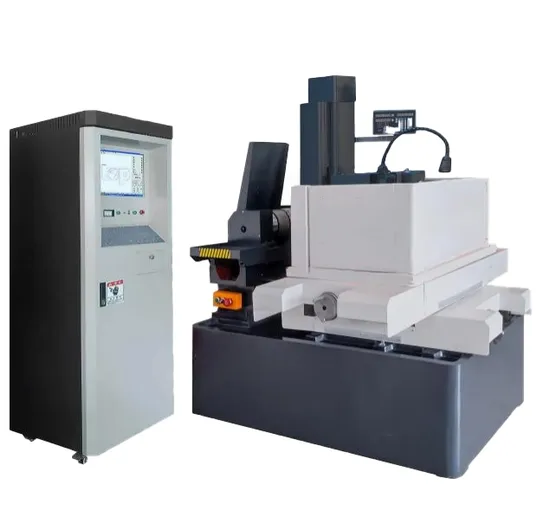 The DK7735A is a high efficiency wire cutting machine with high precision and rigidity. It is a set of machine tool electrical appliances, high frequency power supply, servo control and graphics programming as one, to achieve high efficiency, high precision, high finish, simple processing control, greatly improve the processing level of fast wire cutting machine.Flexible commutation with frequency converter is adopted in machine tool commutation, which can arbitrarily adjust the speed of wire conveyor drum, thereby improving the smoothness of workpiece.
