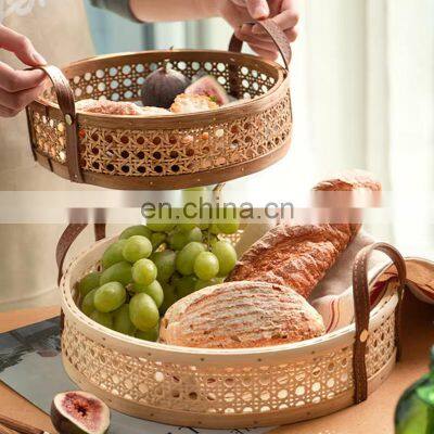 Product DescriptionHot Product Woven Rattan storage basket With Wooden Plate Serving Tray With Leather Handle for Table WholesaleThese serving trays are manufactured to an extremely high standard and have a very rigid and strong feel to them. Great for serving a variety of snack foods such as French bread or sandwiches, bread sticks, cold meats and cheese platters, fruit display or servings etc. Adds a touch of rustic charm to your table and is very inviting for your friends, guests and family.Hand-woven by local craftsmen, suitable for use in all living spaces, is durable and environmentally friendly. – It completes the elegance in presentations and is used to carry our treats.Plant Fiber TypeRattanTypeStorage TraysApplicable SpaceBathroom, Living Room, KitchenProductFood containerShapeRoundNo. of TiersSingleCommercial BuyerRestaurants, Food & Beverage Stores, Super Markets, Hotels, Gifts StoresFunctional designMultifunctionRelated ProductRecommended By SellerMain MaterialMain MarketsPacking & DeliveryOur Selling PointsCompany Profile
