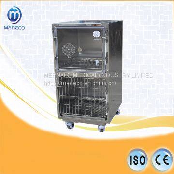The box body is made of stainless steel, the back is equipped with an air outlet, the door is made of transparent plexiglass, the door is equipped with an adjustable ventilation hole, equipped with a wet and dry thermometer and an oxygen connection hole, and the door lock is automatically locked, which is safe and convenient.It is equipped with a stainless steel mesh and an active dirt pan.